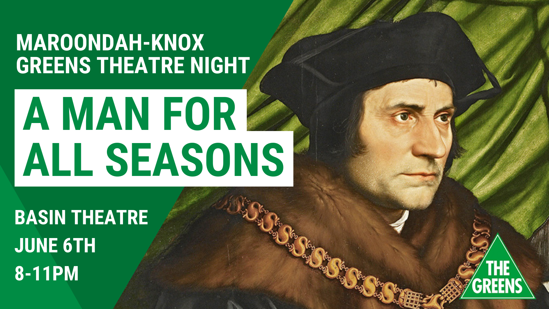 Join us for a terrific night of superb theatre as we watch the Robert Bolt play: A Man For all Seasons, performed by the Basin Theatre troupe.